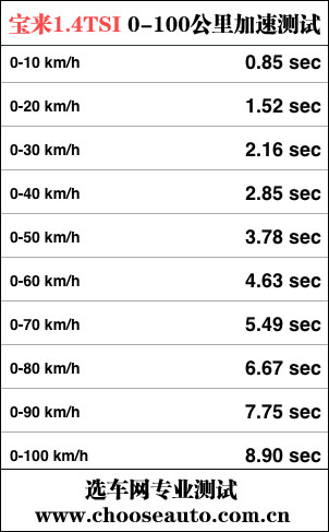 从起步时车身的姿态也能看出,车头上抬不明显,感觉比较温柔。起步之后就显得比较快速了,发动机扭矩的爆发向前拽着车身,接近0.5g的最大加速度在此时出现。从0加速至100km/h的过程中,变速箱完成了两次换档,每一次的时间都很短,动力损失也不大。最终,1.4TSI宝来的最好成绩为8.90秒,而这样的成绩让我和同事们都感到颇为惊讶!突破了9秒大关的宝来1.4TSI,似乎已经有实力与更高级别的1.8TSI发动机一较高下了!