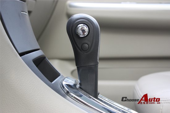 挡杆的设计非常特别,镀铬的解锁钮看上去很有档次,它的下面是一个黑色的小按钮,不注意看的话很难发现。这个按钮是特有的经济模式,也就是说,不是所有CVT车型都有。在这个模式下,发动机的转速会比D挡更低一些,比如你正在以100km/h,2000rpm的方式行驶,此时如果你按下E,那么转速会马上跌落到1500rpm,这样的好处是更好的燃油经济性,但同时当然也会对动力有不小的影响。