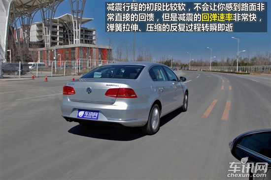 进入到激烈的绕桩测试环节,迈腾的底盘还是表现出了德系车固有的厚重感,虽然悬挂为舒适性做出了让步,但整车的刚性依旧坚固,松垮的迹象始终没有出现。并不十分轻盈的转向提供了应有的路感,至少在这个级别的车型中,迈腾能够提供足够的“人车沟通”。
