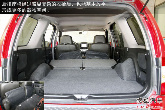 行李厢很大,有1020L,也足够平整,长途行驶需要携带的行李物件基本都能便于装载,后排座椅经过略显复杂的收拾后,也能基本放平,形成更多的载物空间。还嫌不够?别忘了车顶的行李架构成的载物筐,只要捆扎结实,绝对是极大的车内空间补充。