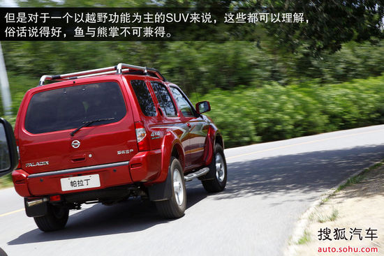 虽然这样的结构设计令车辆在公路上行驶时由于自重大、重心高,导致车辆在并线和过弯时侧倾很明显,高速稳定性也有损失,但是对于一个以越野功能为主的SUV来说,这些都可以理解,俗话说得好,鱼与熊掌不可兼得。如果你的要求更高,那肯定不是这个价位车型能够满足得了的了。