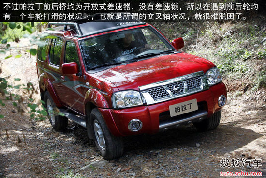 不过帕拉丁前后桥均为开放式差速器,没有差速锁,所以在遇到前后轮均有一个车轮打滑的状况时,也就是所谓的交叉轴状况,就很难脱困了。
