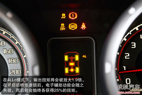 帕杰罗的低速四驱可以将扭矩放大1.9倍,也提供给它更大的攀爬能力,在最高配置的车型上,提供了后桥差速锁,开启后桥差速锁同时ABS以及其他电子辅助也都相继失效,而后轮会始终保持各25%的扭矩输出,即便是在上坡路段,前轮出现打滑而无法实现扭矩迁移时,一侧后轮也同时打滑,它也能依靠另一侧后轮25%的动力完成脱困。