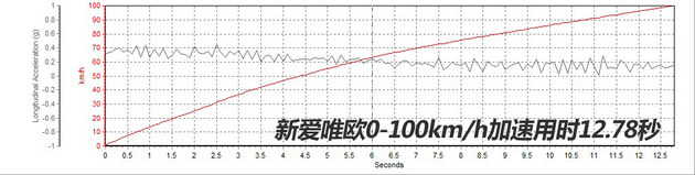 而在测试部分,新爱唯欧的表现虽不那么强悍,但对于一辆1.6L自然系统发动机的三厢车来说已经足够了,首先是0-100km/h加速,在起步初段这台发动机的输出非常平顺,直至转速逼近4000转时才感受到了一股畅快的力量,在变速箱跳至2挡后,发动机转速依旧保持在最大扭力的输出转速区间,最后以三挡破百,用时12.78秒。
