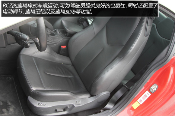 RCZ的座椅样式非常运动,可为驾驶员提供良好的包裹性,同时还配置了电动调节、座椅记忆以及座椅加热等功能。