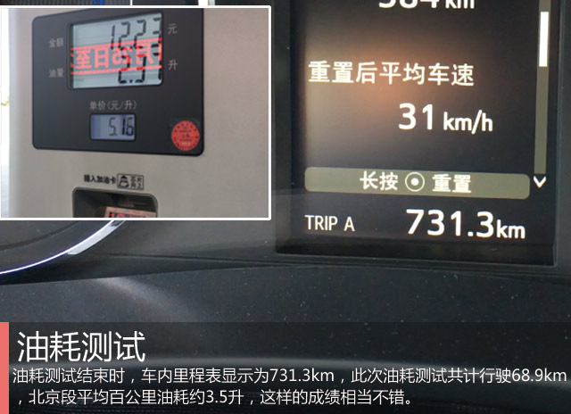 此次油耗测试共计行驶68.9km,加油量为2.37升,平均百公里综合油耗约3.5升,测出这样的油耗着实让编辑一惊。