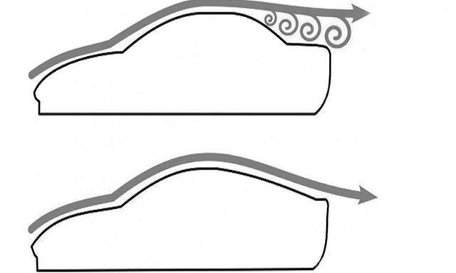 根据著名空气动力学康达效应的原理解释,流体(水流或气流)有偏离原本流动方向,改为随着凸出的物体表面流动的倾向。简单的说,当汽车高速行驶时,只要车尾部曲率不大,气流就会顺着该物体表面流动。而溜背设计可以完美的做到这点,整体流畅的造型不仅可以稳定汽车中后段的气流稳定,减小风阻系数,并结合尾翼设计能使气流在车辆尾端产生下压力,加强车辆高速行驶时的稳定。