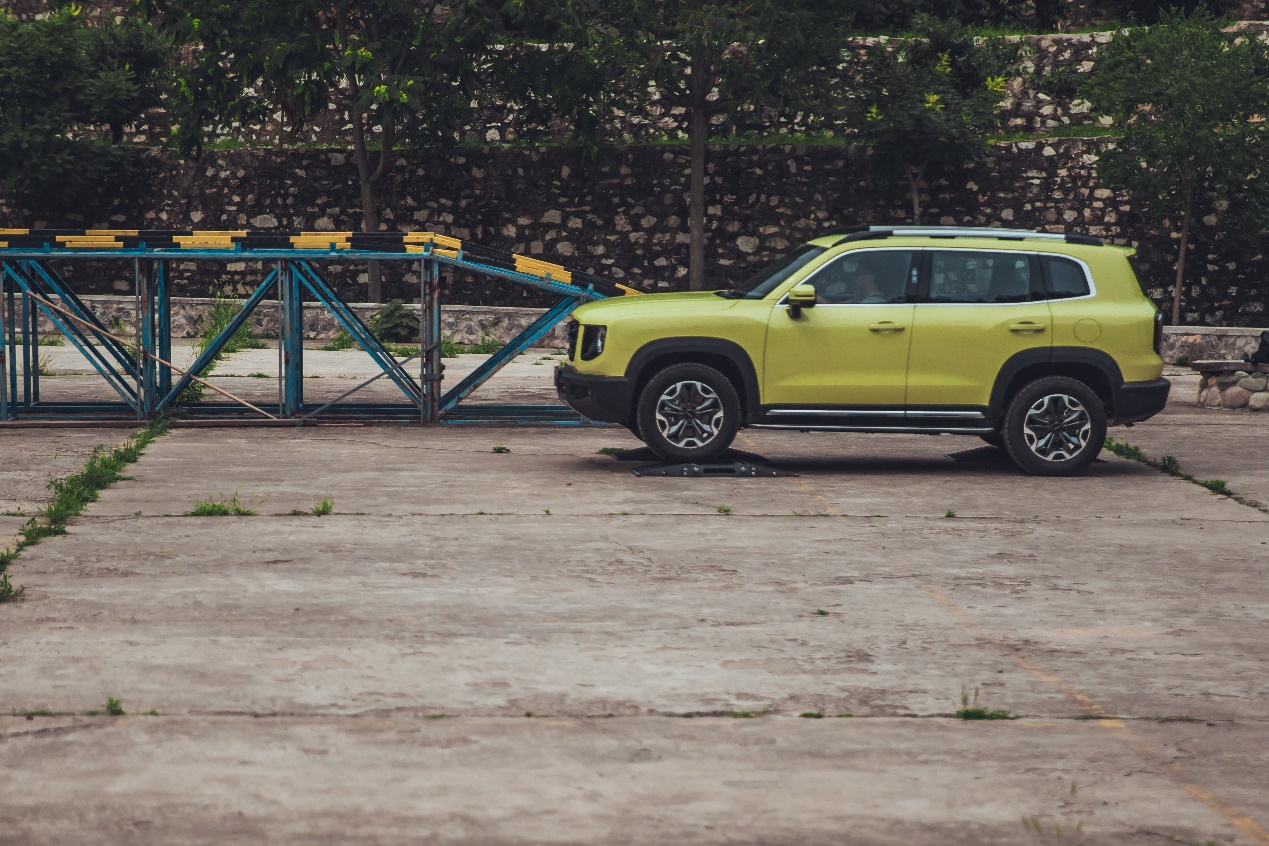 在此优势下,哈弗大狗则可以轻松应对,测试中RAV4因为接近角相对较小的缘故难以通过的两项测试,爬阶梯以及连续“馒头包”。从照片中已经可以看出,RAV4的前唇已经贴到台阶和满头包上,而此时的前轮还没有走在向上的行程上。如果硬性通过一定会对前杠形成破坏,而大狗则给驾驶员十足的信心。