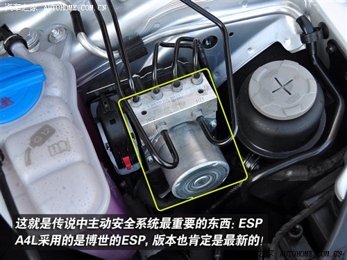 七、ESP车身稳定系统。不同于迈腾的ESP品牌,而是奥迪一直使用的博世ESP,和我们之间测试过的奥迪A5的一模一样,在主动安全配置上,A4L并没有缩水。