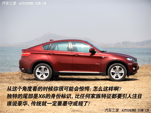 可是你如果从侧面看的话,它留给你原本还比较正常的第一印象一下子就会烟消云散了:尾部真怪呀!不过话说回来,SUV就一定要是规规矩矩的火柴盒形状吗?我看未必,先不说X6好不好看,这种创新的精神就很值得肯定。