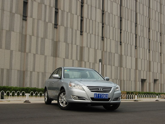 我所试驾的车型是一辆银色的2.0L自动挡车型,这种银色的车漆在阳光下泛着淡蓝色的光泽,第一印象很不错。现代似乎深谙传统的中国男性的审美观,造型上充分展示了中庸的特色,没有大起大落、没有棱角分明,简单流畅的线条让它看起来不是那么吸引眼球,但看久了也不会感到腻烦。