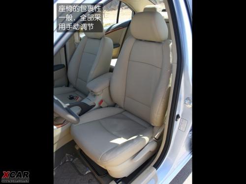中控台、方向盘和车门均衬嵌有提升档次感的桃木装饰,颜色搭配略浅,虽然选材一般,但整体视觉效果还算不错。中控区由两条竖式空调出风口、自动空调液晶显示和少量按键组成,设计清晰简洁,初次接触的驾驶者也能够方便的找到相应按键,上手简单。中控区下方设置了薄板式一体化储物格,手指轻搬开关即开,储物空间大的可以用恐怖来形容了,正方造型有利于存放各种物品。储物格下方是同样带有轻触式衬板的隐藏式点烟器和烟灰缸。前排座椅加热按钮分布在衬板两侧。再向下延伸,皮革和塑料混合材质的4速手自一体档把也由桃木装饰衬托,整个中控区自上而下整体感很强。