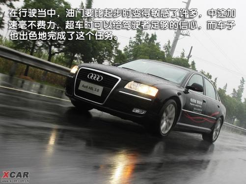 车子在正常起步时的表现并不是很鲁莽,没有冒然地向前冲出去。虽然这种情况与1.74吨的车重有关,但也跟趋向于舒适的调教有关,所以我们不能就因此判断A8L 3.0FSI的动力还不够强劲。在行驶当中,油门要比起步时变得敏感了许多,中途加速毫不费力,超车时可以给驾驶者足够的信心,而车子也出色地完成了这个任务。