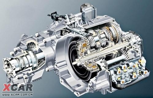 它主要包括一个由两组离合器片集合而成的双离合器装置,一个由实心轴及其外套筒组合而成的双传动轴机构,以及控制单数和双数档位的两组齿轮和电子液压控制系统等部件组成。在整个换档过程中,当一组齿轮在输出动力时,另一组齿轮已经待命,所以DSG总是保持有一组齿轮在输出动力,不会出现动力传递的间断,这也就是双离合变速器能够实现极快换档速度的原因。