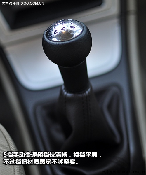 手动变速箱挡位清晰,动作顺滑清脆,手感非常不错,并且没有太多的抖动,在同价位车型中表现还是非常出色的。挡把的材质有点软不够坚实,或者说很有弹性,每一次入挡后,总有种挡把会弯曲走形的感觉,这种手感就像是火腿肠,只是更硬一些罢了。当然除了这个问题,变速箱的表现让人非常满意,这个价位有这个性能还是很值得的。