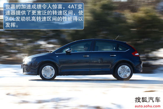 世嘉的动力总成虽然毫无新意,但对比的结果却让我们感到不少惊喜,其成绩微弱落后于使用了双离合器变速器的福克斯2.0。一方面,世嘉2.0升发动机自身性能表现不俗,最大扭矩爆发得也比较早,其次,世嘉使用的4速变速器,在起步阶段,能提供发动机更宽的转速区间,更有利于发动机在高转速下的性能表现。从这一点也反映出在加速性能上,世嘉2.0升发动机与4AT变速器的配合并不输给众多使用6AT甚至双离合变速器的车型。当然这仅仅是这台4AT变速器的一方面优势,考虑到平顺性以及变速器的响应也有着它不足之处,在接下来的测试中,我们也将加以证明。