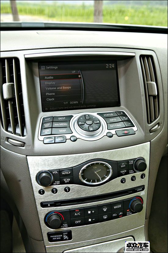 与前面的ES一样,7英寸的液晶屏是G35中控台上最耀眼的配备,一个大型的旋钮有点像宝马的i-Drive系统,配合确认键能完成大部分功能的设定,英菲尼迪称其为VIS系统。