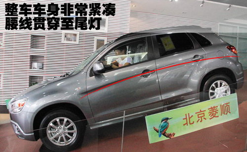 三菱ASX劲炫是一款紧凑型跨界车,与日产逍客的产品定位相似。从侧面看,三菱ASX劲炫整车非常紧凑,但由深至浅贯穿后尾灯的腰线却给整车带来了很多运动气息。另外,三菱ASX劲炫采用了大尺寸黑色天窗,占据了大部分车顶面积,使车内的采光效果非常好。