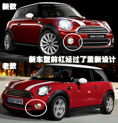 2011款MINI Cooper在外形方面并没有大的变化,针对细节部分进行了重新设计。全新的前保险杠走运动风格,格栅面积更大,雾灯设计为凸起状。两个标志性的圆形头灯内部也进行了细微的调整。