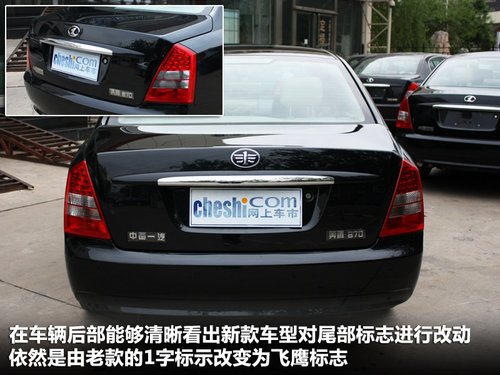 2011款奔腾B70对前脸进行了小幅的改动,“鹰标”取代了目前使用的一字标。与此同时,新车在进气格栅处也做了改进,镀铬饰条自上而下排列,行成鹰标的抽象造型。
