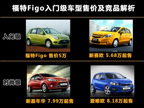 福特Figo引入国内后势必将进一步降低长安福特入门级车型的准入门槛,在同级竞争车型中占据一定的市场份额,从而正式抗衡上海通用雪佛兰新赛欧,进一步抢占二三线城市的潜在消费者。
