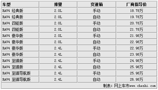 新RAV4在 8月25日正式上市,此次新RAV4属于中期小改款,外观和内饰变动得都不是很大。而2.0L四驱版的引入是本次改款最大的亮点,不过就整个车系而言,车型配置有增有减。整车做工也很精细,外观时尚,能够符合大众审美角度,也同时吸引了更多消费者的目光。此次改款RAV4售价区间在18.78-26.98 万。