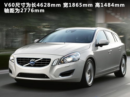 沃尔沃V60车身尺寸为4628mm X 1865mm X 1484mm,轴距为2776mm,比S60要大上一圈,而较长的轴距也将为V60创造更宽敞的车内空间。而V60虽为旅行车型,但其风阻系数仅 0.29Cd。在外观方面,在B柱以前,V60都与S60有着相同的设计与风格,因此不论LED车头标识定位灯、圆滑但略微修长的头灯设计、尺寸合宜的水箱罩与新厂徽设计,都被完整的保留在V60。这些设计元素是目前沃尔沃车型的统一风格,从XC60就已开始。