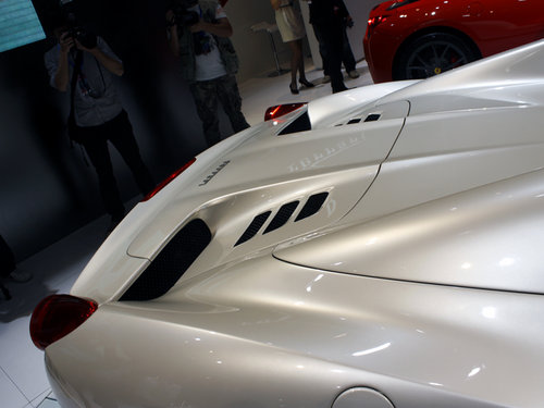 此外,全铝设计的顶棚还比传统的软顶设计重量轻25kg,使得该车的车身质量为1430kg,前后的配重比为42:58。尾部采用了革新性的拱形设计,旨在优化进气系统以及离合器和变速箱散热器中的空气流动。尾部宽大的可调节式电控挡风板的出现,可以调节驾驶室中的气 流,能让车内人员在时速200km/h时速下进行正常谈话。不过遗憾的是,之前458 Italia车型中张扬的透明发动机舱盖设计将在敞篷版中不复存在。