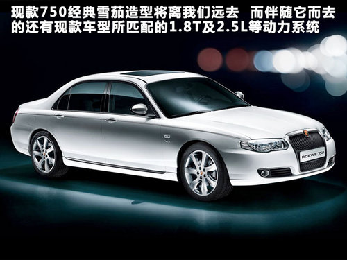 即将迎来全新换代的全新荣威750与新君越一样,都是基于Epsilon II前驱平台开发而来,换代750将于明年晚些时候推出,拥有这ROVER血统的现款荣威750将会完全被替代。整体的造型轮廓和新君越非 常相似,外形饱满敦实而不失时尚之感。电子手刹、多功能方向盘及集成了倒车影像和GPS的DVD显示屏都会出现。新款的750轴距上会与现款车型的2849mm有些许出入,但其大空间舒适性及外观美感我们都大可不必怀疑。动力方面,将于新君越2.0T、2.4L车型设计相同,而1.8T和2.5升将会彻底地与我们告别。