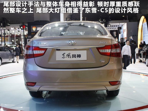 A60在内饰上与轩逸相比改动并不大,只是在中控台边缘的处理上增加了更多的棱角,显得阳刚了不少。而尾部的设计则明显借鉴了东风雪铁龙C5。