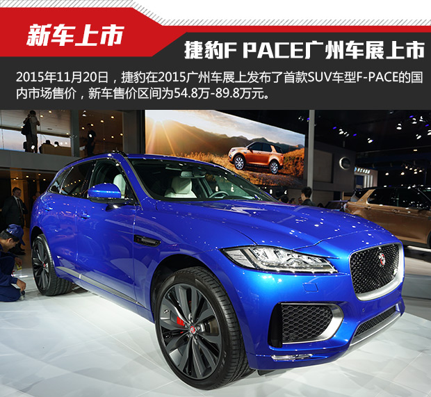 2015年11月20日,捷豹在2015广州车展上发布了首款SUV车型F-PACE的国内市场售价,新车售价区间为54.8万-89.8万元。据悉,此次该车仅是公布售价,目前可接受预定,而正式上市预计在2016年。