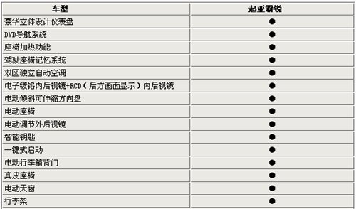近日,记者从北京地区进口起亚4S店了解到:起亚霸锐将于7月20日上市销售,目前店内已经开始接受霸锐的预订工作,订金为1万元。与此同时,记者从韩国起亚内部相关人士处得到了即将上市的霸锐详细参数配置。见下表:
