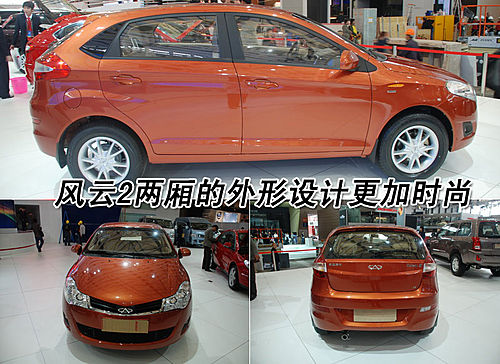 奇瑞风云2两厢的外形设计更加时尚,非常适合年轻消费者的需求。这款新车的前脸与尾部的设计与概念车稍有改变,但新颖的造型仍然吸引了很多观众的注意。