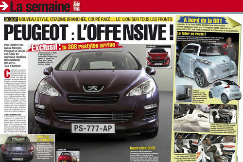 标致在2007年推出了新一代的标致308车型,经过了两年的时候后,标致308很快将迎来新的改款车型。近日,有法国杂志首度曝光了改款标致308车型的无伪谍照。新车型采用了全新的前脸设计,据悉,改款308将在明年3月的日内瓦车展上亮相并随后上市。