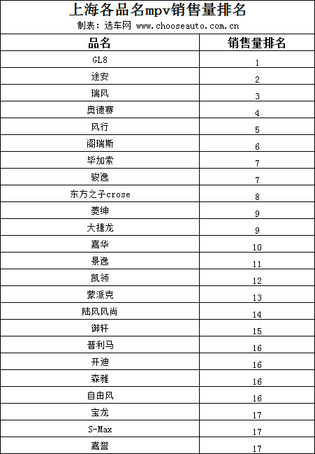 关键词:MPV,上海,排名,销售量,品名