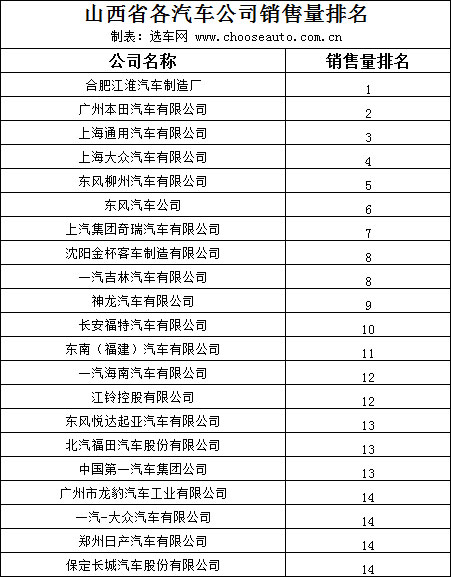 08年5月山西各MPV汽车公司销量排名