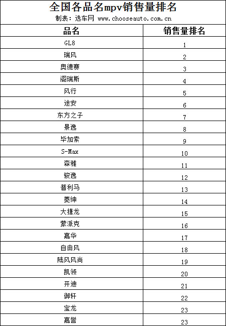 关键词:MPV,排名,全国,销售量,品名