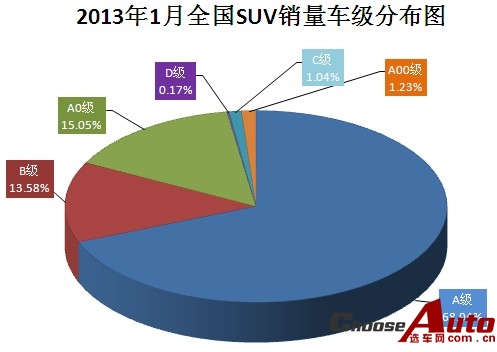 2013年1月全国SUV销量各级别排行
