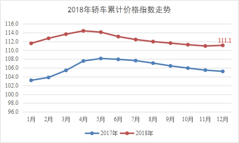 来自北京正则大成汽车信息咨询中心的统计分析显示,2018年轿车的市场规模达到19387.3亿元,同比增长2.5%;正则轿车市场规模指数(累计)为1109.4 点,较2017年上涨了27.0 点,表明消费能力略有上涨。2018年轿车累积市场销售平均价为16.9万元,比去年提高了0.9万元;正则轿车价格指数(累计)为111.1点,较2017年上涨了5.9 点,表明消费水平大幅上涨。2018年,公众消费能力和消费水平虽然都在上涨,但对2019年轿车市场仍要谨慎看待。