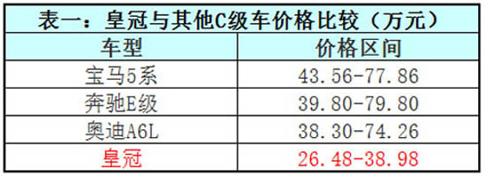 (皇冠低端车型价格远低于几个B级车的高端车)