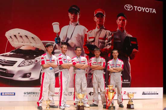 作为目前全国规模最大、影响最广泛的职业技能比赛,由教育部等部委主办的09年全国职业院校比赛共吸引了来自全国37个省、自治区、直辖市的72所中等职业学校汽车运用与维修专业的学生共计341人参加。为了配合比赛的开展,丰田(中国)携手一汽丰田、广汽丰田为此次大赛提供了120万元的资金支持及COROLLA卡罗拉、CAMRY凯美瑞等教具车辆。此次比赛的决赛分为一般维修个人赛,一般维修团体赛,钣金,喷漆四个项目进行。最终,经过激烈角逐,来自上海市交通学校(上海市T-TEP学校﹡注1)的林王胜获得了一般维修个人组一等奖;浙江省慈溪市锦堂职业高级中学的阮明明、沈圣光获得了一般维修团体组一等奖;苏州建设交通高等职业技术学校(苏州市T-TEP学校)的戚猛获得了钣金项目一等奖;北京市交通学校(北京市T-TEP学校)的张建获得了喷漆项目一等奖。