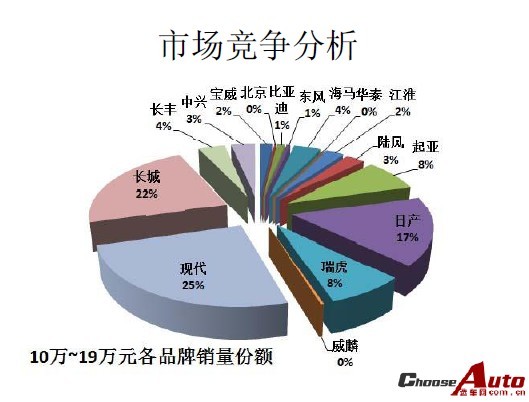 根据《2011上半年中国SUV市场经济指数分析》报告的数据显示,低价SUV市场100%由自主品牌占据,其中销量较大的为众泰、奇瑞和长城,但其中只有奇瑞保持了正增长,其余均呈现负增长。