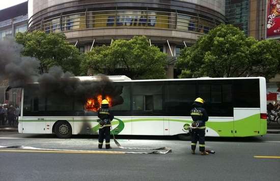 案例1:2011年4月11日下午2点50分,一位张姓电动出租车司机在行至杭州武林路时,车上两名乘客突然跟司机说“车里好像有焦味”,张师傅赶紧靠边停车,打开后备厢,发现里面在冒烟。很快,就有火苗蹿了出来,两名乘客赶紧下车,张师傅边打电话报警,边拿出车上配备的灭火器想要灭火。无奈火势太猛,只得放弃这辆电动出租车……