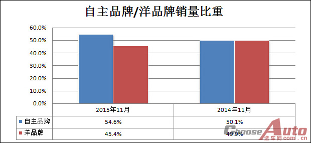 自主品牌在SUV市场增长势头依然很猛,与去年同期相比,拉大与洋品牌之间的差距。11月SUV市场销量排名中,前三位全部为自主品牌,在前十位中,自主品牌共包揽了七位,有越来越多的车型进入月销万辆俱乐部。