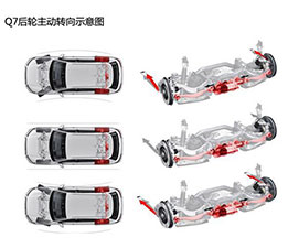 配备第七代quattro全时四驱系统,当出现车轮打滑时前轴可最多获得70%的动力,后轴可获最多85%的动力分配...
